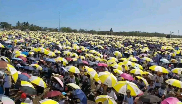 LAUTAN MANUSIA- Tasi Tolu berubah menjadi lautan manusia saat pemimpin Umat Katolik Sedunia, Paus Fransiskus memimpin Misa Agung di kawasan tersebut pada Selasa (10/9/2024).