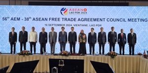 FOTO BERSAMA- Menteri Perdagangan dan Industri Timor Leste, Filipus Nino Pereira foto bersama dengan para Menteri Perdagangan dan Industri ASEAN di ibu kota Vientiane, Laos ketika menghadiri Pertemuan Menteri Ekonomi ASEAN (AEM) dan Pertemuan Terkait ke-56 di Laos pada 15 – 22 September 2024.